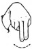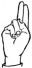 На ћирилици написано МИЊА ЈОВАНЧЕВИЋ састоји се из 14 слова [?]. Исписано ћириличном једноручном азбуком за глувонеме: